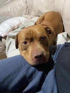 Nunes’ owners returned home recently to find the 4 year old American Staffordshire Bull Terrier in the back yard with some very concerning torn up packaging.  She had managed to get into the bin and pull out an old box of rodenticide poison and promptly have a party with it in the backyard!  Although there were no visible signs that Nunes had ingested the bait, her owners knew that this spelt trouble, and rushed her down to the Narre Warren team to figure out what the next steps should be.